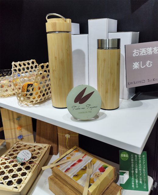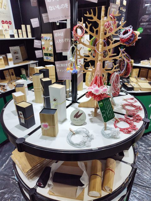 竹と紙を主材にした最新のパッケージや装飾品、ワンウェイ商品など環境にやさしくて価値を上げていけるアイテムやアイデアを展示させていただきました。