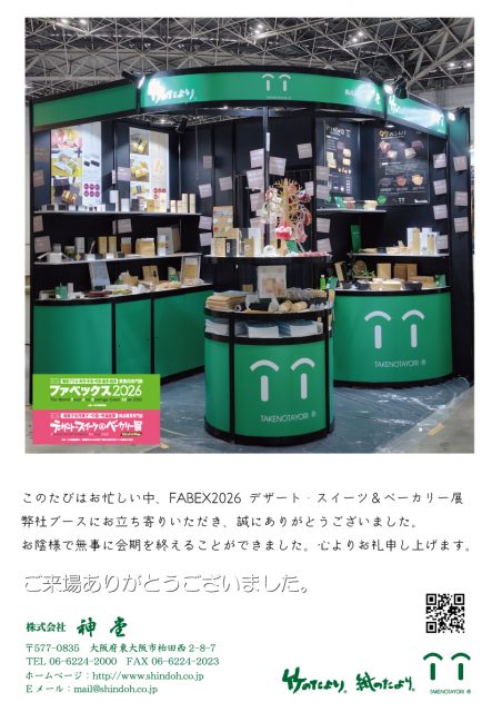このたびは、FABEX2026 デザート・スイーツ&ベーカリー展 弊社ブースにお立ち寄りいただき誠に有難うございました。